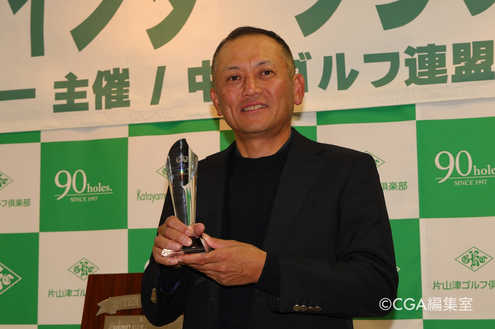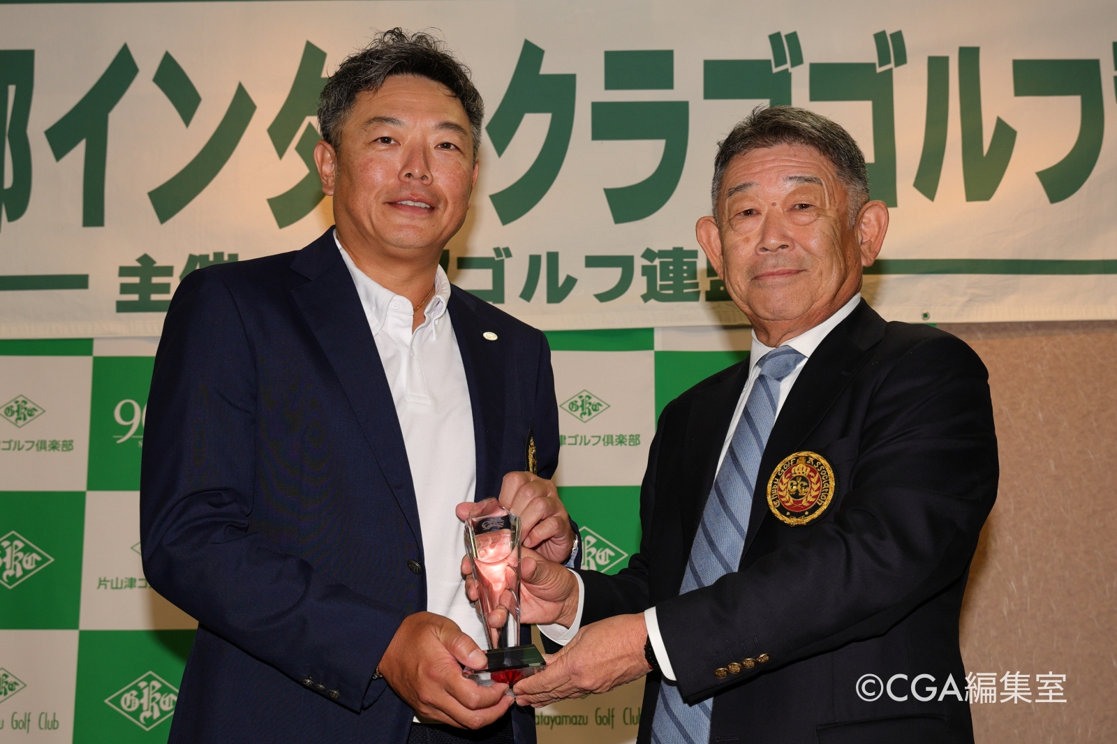 また、ベストスコア賞は、50歳以上の部は74ストロークの小野祐次郎選手(貞宝CC)、一般の部は73ストロークで福岡逸人選手(三好CC)と中嶋太造選手(芦原GC)だった。芦原GCは、中嶋選手の活躍で、一気に4位に浮上した。