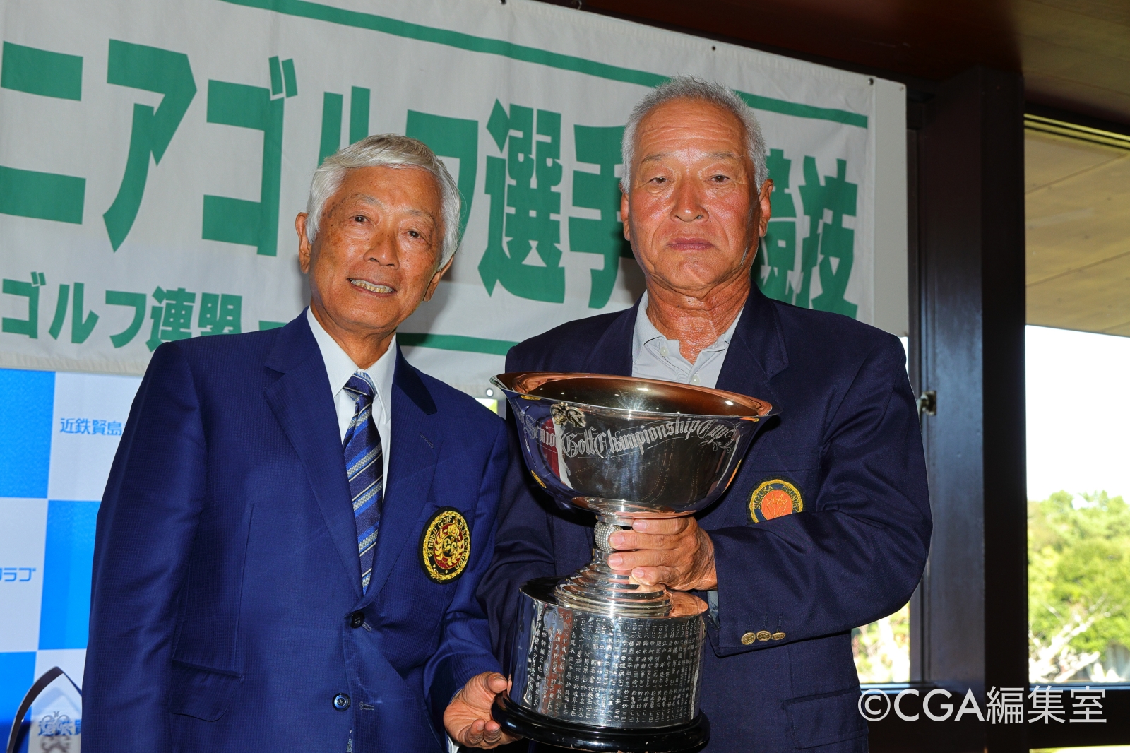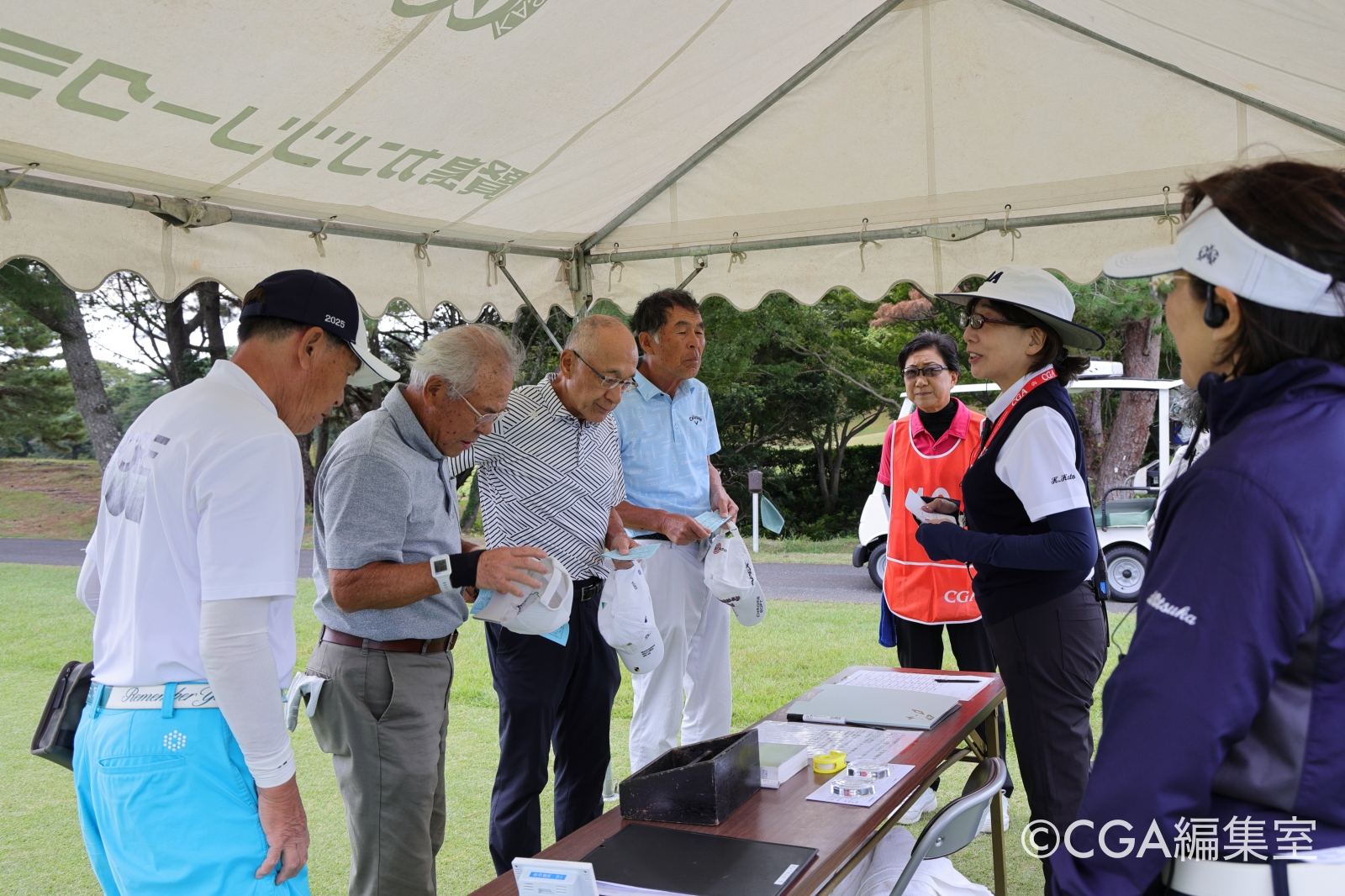 優勝した石原選手はシードを持っているため、13位の選手までが対象となった。この中には、今日をアウトの1組目でスタートし、エージシュートとなる76ストロークをマークした田中鋭郎選手(富士C可児C・77歳)がいる。また、75歳の小島選手が74ストローク、79歳の萩野選手が79ストロークもエージシュートを達成し、出場権を獲得した。