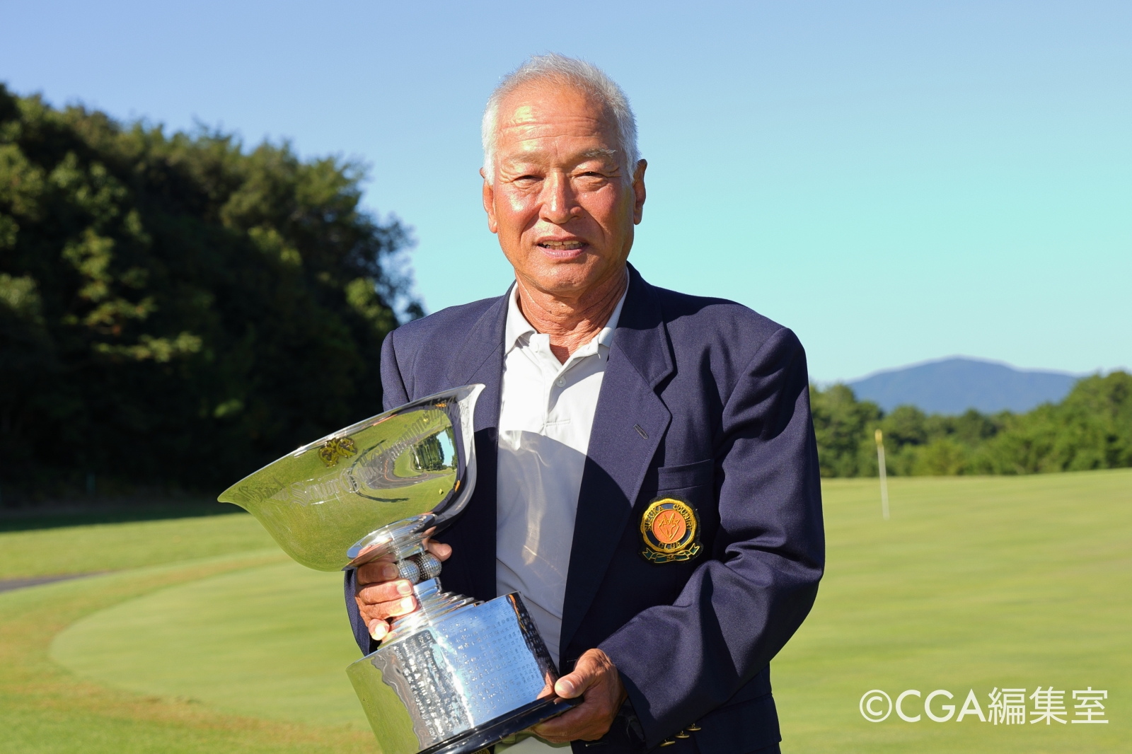 石原選手は、初日を3アンダーで終えて、亀山市の自宅に早々に帰って英気を養い、今朝は6時頃に家を出てきたそうだ。これまで三重県主催競技やパブリックの試合には50歳頃から出場してきたが、CGA競技はほとんど出ていない。今回は、今年の全日本グランドシニアアマチュアゴルファーズ選手権の優勝により、中部グランドシニアと日本グランドシニアの出場権を得た。「遠くへの遠征は費用もかかるし、なかなか出場できません。何しろ年金生活だから」と笑ったが、石原選手はゴルファーの他に、若い時からサッカー選手として四日市フットボールクラブに所属、65歳の時は全国3位入賞に貢献、今は70歳代の部で試合をしている。亀山市のシルバー人材登録をしていて、亀山市庁舎で仕事も続けているという元気いっぱいのアスリートはこの初優勝を心から喜んだ。「来年は岐阜が会場だと聞いたから、出場できそうです(笑)」。