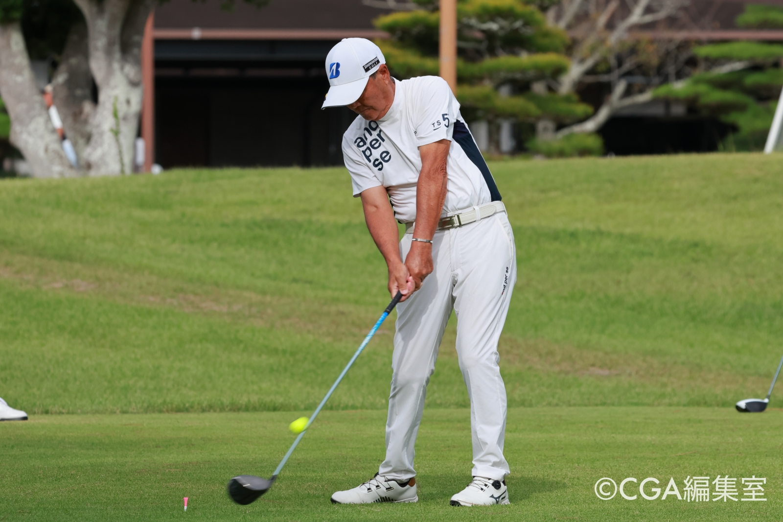 首位の石原選手は、1番をパーとするも2番パー4、3番パー4で連続ボギー、5番パー3で初バーディが来て、この時点で通算2アンダー。さらに9番パー4をボギーとして、通算1アンダーで前半を終えた。前半を終えて、神尾選手と西口選手が通算5オーバー、金村選手は通算11オーバーだった。前の組では、最終組から4組前の小島朋広選手(名倉CC)が35で回り、通算4オーバーと2位に浮上、2組前の辻幸博選手(CRCCRC三重白山)、萩野道夫選手(ロイヤルCC)、1組前の木村選手、横山選手が通算5オーバーで折り返していた。