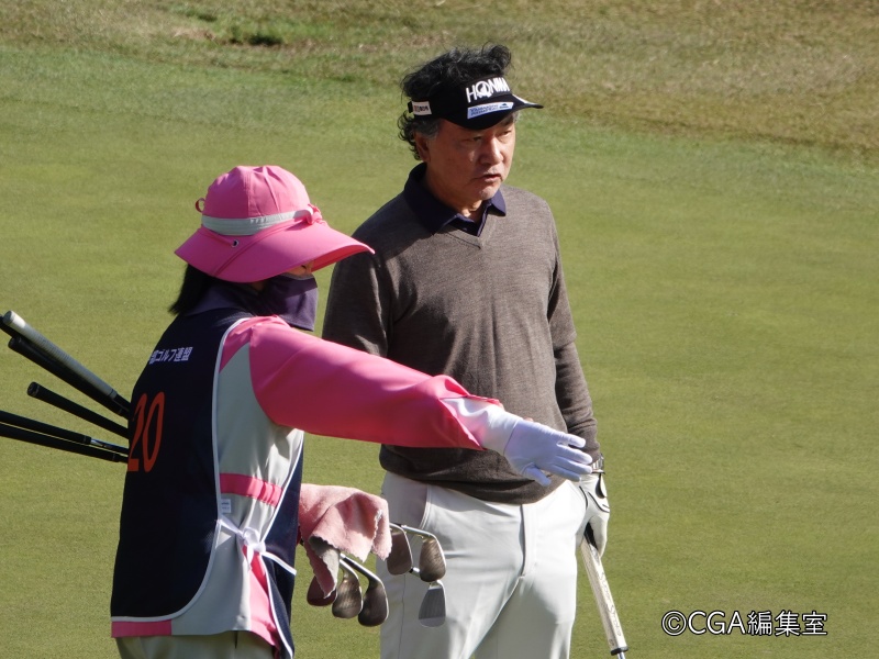 「前半のアウトで、2アンダーだったので、今日はどうなってるんだろうと思ったら、やっぱり後半になったら、パットが入らず、3パットを2回もしちゃいました」。60歳。