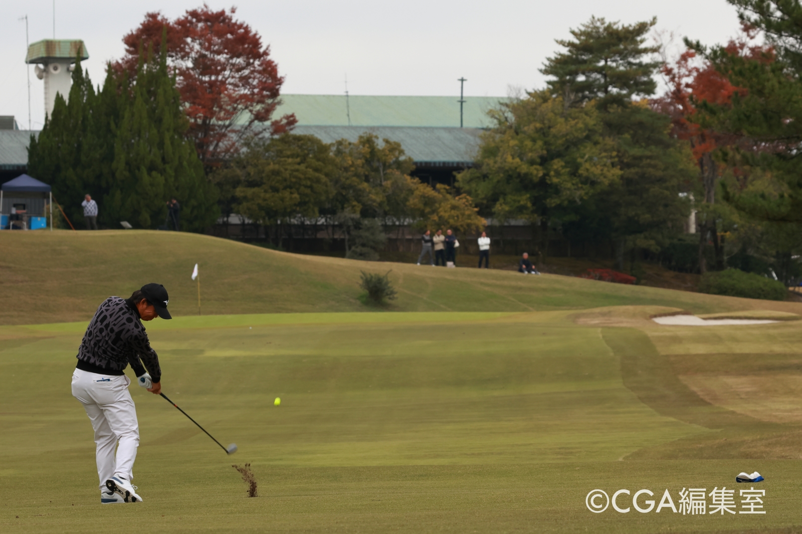 前半を終えて、首位は佐々選手、そして、迫っていたのが、最終組から3組前でスタートした桑原克典選手(ミズノ・株)で前半に4バーディを奪い通算2アンダーに伸ばしていた。実力ある桑原選手の追い上げはどこまで行くのか、大いに注目された。