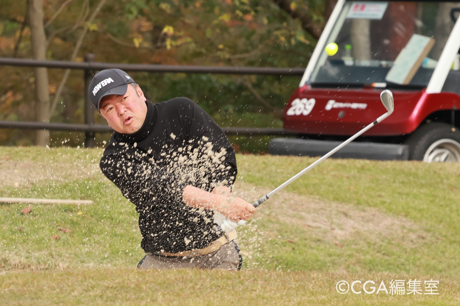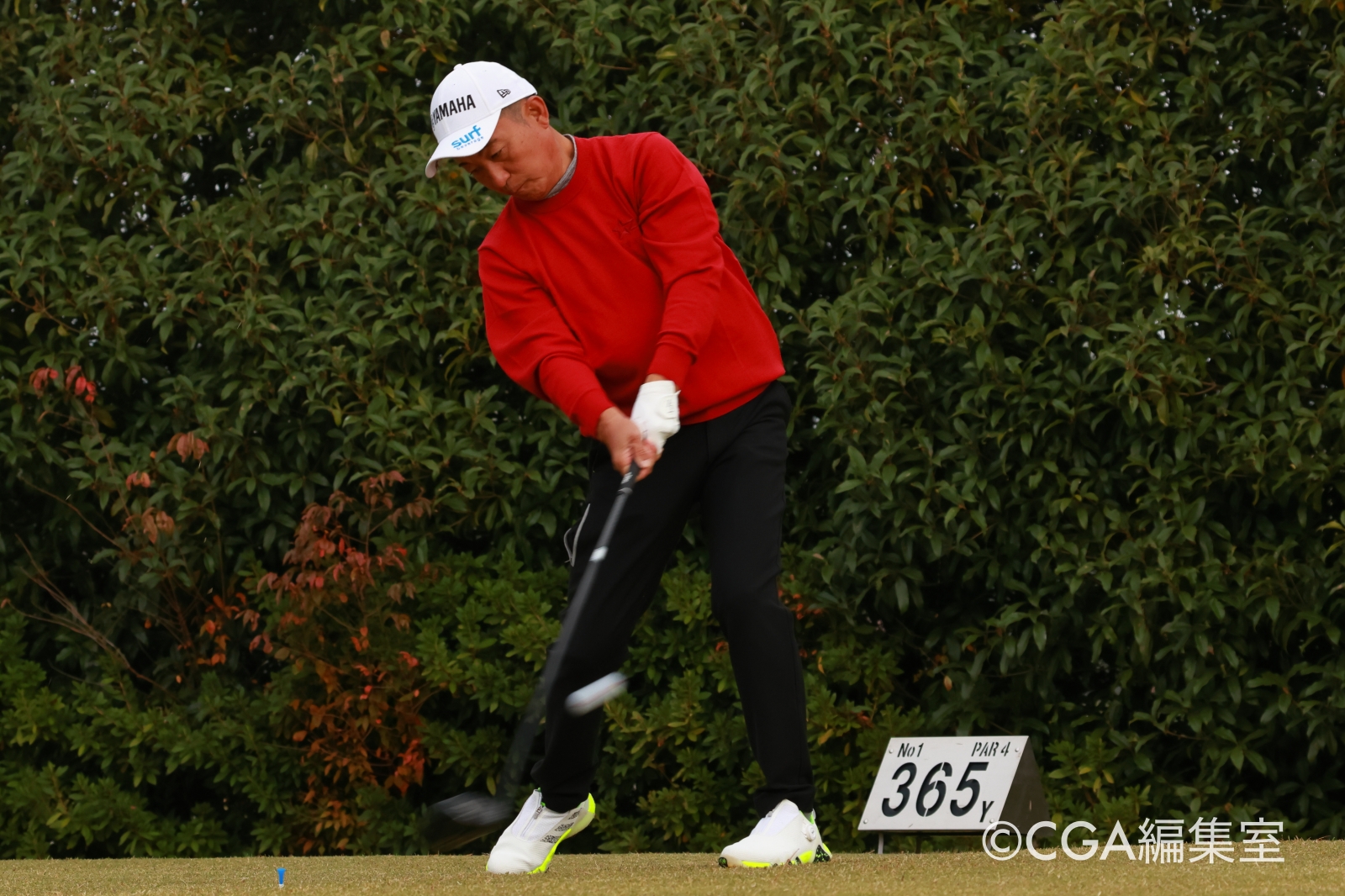 初日の首位の5アンダー、山本明秀選手(三鈴CC)を追いかけ、2打差の3アンダー、佐々悦彦選手(赤福)、3打差2アンダーの奥智将選手(KENTOUCHU COFFEE)、4打差1アンダーの鈴木和成選手(フリー)が最終組で午前9時にティーオフした。
