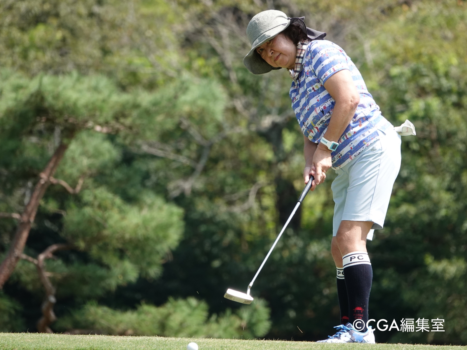 昨年チャンピオンの長田選手はアウトからのスタートだった。前半のハーフは、スコアカード通りのイーブンパーで折り返した。後半に入り、11番で1メートルのバーディパットを沈めたが、15番、18番でボギーとした。「長めのパーパットも多かったので、そこそこまとまったのかなと思います。今日はキャディーさんのおかげと同伴者のおかげ。キャディーさんの言うラインがぴったりでした」と初日を振り返った。「明日も気負わずに、できたらいいな〜」。女子ミッドアマ界では全国区の長田選手、中部の連覇はいかに?!