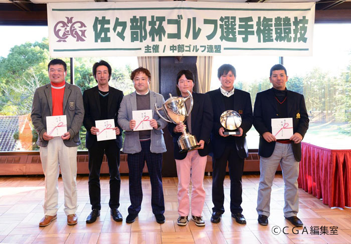 表彰式で、CGA川口文夫会長が、「佐々部杯は、中部ゴルフ連盟初代会長の佐々部晩穂氏の功績を称え、昭和54年に創設された大会。会場は佐々部氏にゆかりのある5倶楽部もちまわりで開催されています。常にスポーツマンシップを大切に、クラブチャンピオンとして誇りを持って戦うこの佐々部杯がこれからも末長く続くことを祈念します」と挨拶をしました。