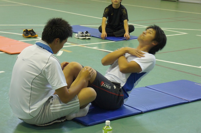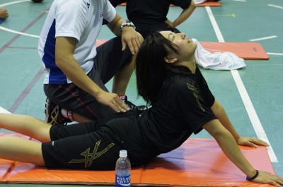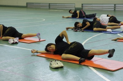 平成26年度強化育成選手の最終合同トレーニングは、朝から雨の一日。至学館大学のスポーツサイエンスセンターの2階体育館で、午前中は体力測定、午後はトレーニングが行われました。