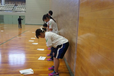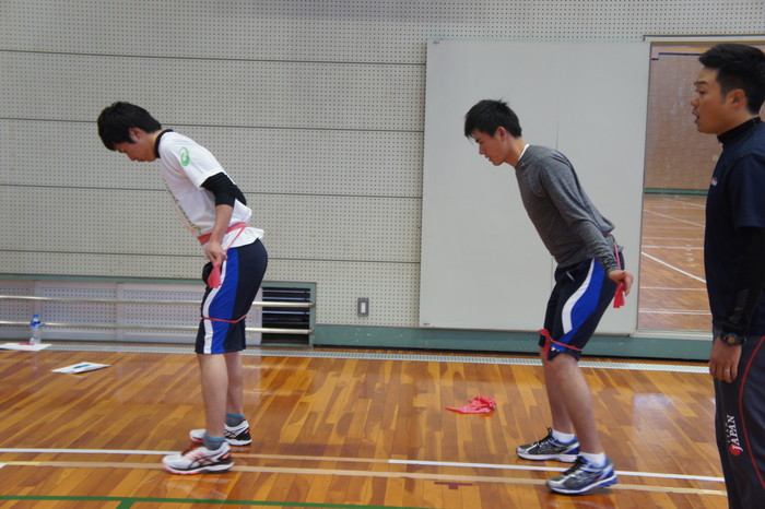 午後からは、JGA発掘育成事業の2016年基本強化トレーニングに基づき、JGA長嶋淳治トレーナーが一つひとつの動きを丁寧に指導。20人の選手の中には、すでに2年目、3年目の選手や今年1月に行われた宮崎での合宿に参加した選手もいます。長嶋トレーナーは、身体のどの部分を動かすのか、気をつけるポイントは何か、そのトレーニングがゴルフのどんな動きを強化していくのか、などについて、わかりやすく解説されました。